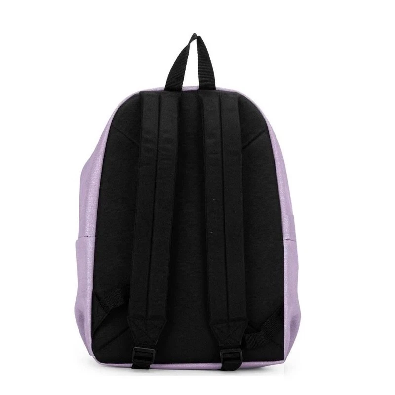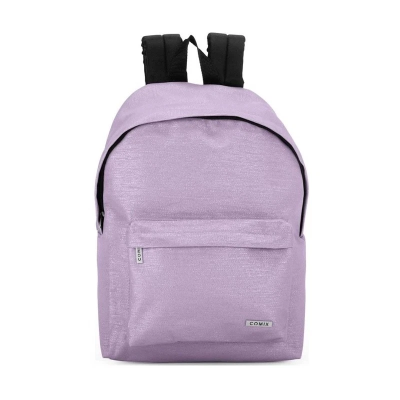 Zaino comix piccolo glitterato a righe lilla, tasca frontale, tasca principale.
