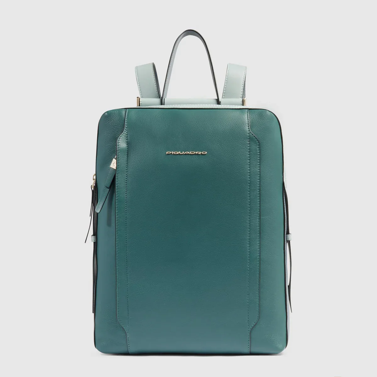 Zaino da donna in pelle, ideale per trasportare PC e iPad®, dotato di protezioni antiurto e tecnologia RFID.